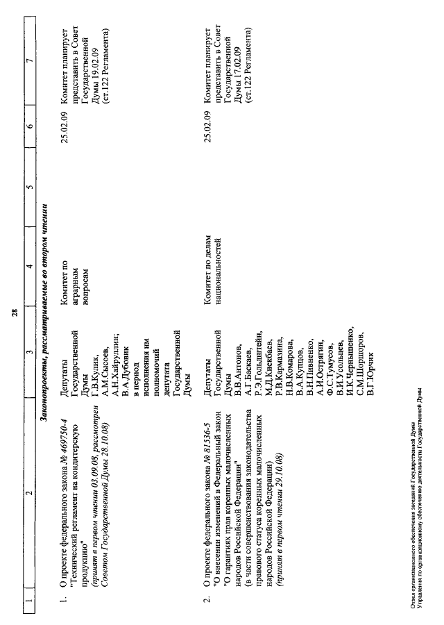 "О КАЛЕНДАРЕ РАССМОТРЕНИЯ ВОПРОСОВ ГОСУДАРСТВЕННОЙ ДУМОЙ С 11 ПО 27 ФЕВРАЛЯ 2009 ГОДА"
