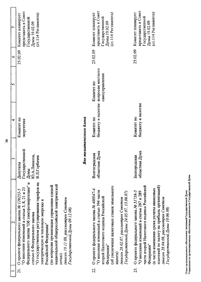 "О КАЛЕНДАРЕ РАССМОТРЕНИЯ ВОПРОСОВ ГОСУДАРСТВЕННОЙ ДУМОЙ С 11 ПО 27 ФЕВРАЛЯ 2009 ГОДА"