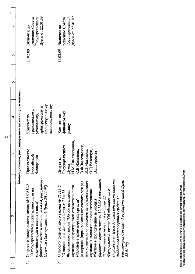 "О КАЛЕНДАРЕ РАССМОТРЕНИЯ ВОПРОСОВ ГОСУДАРСТВЕННОЙ ДУМОЙ С 11 ПО 27 ФЕВРАЛЯ 2009 ГОДА"