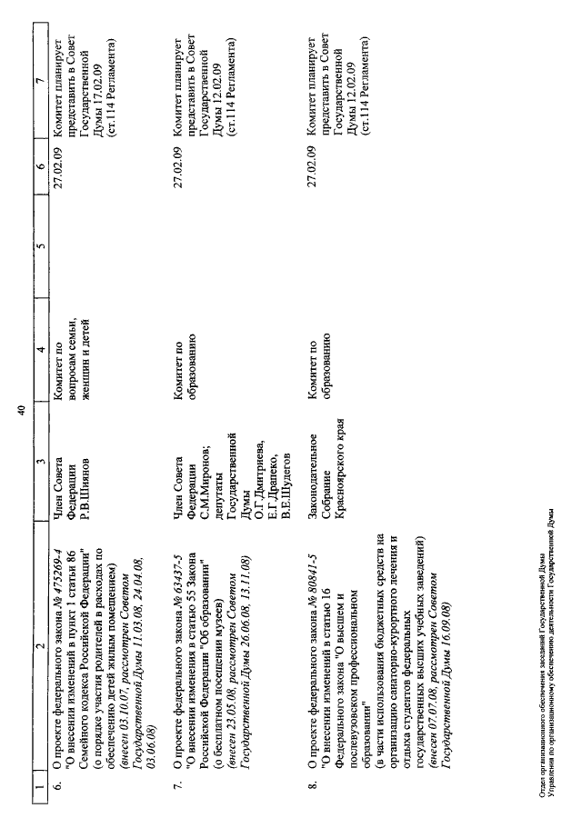 "О КАЛЕНДАРЕ РАССМОТРЕНИЯ ВОПРОСОВ ГОСУДАРСТВЕННОЙ ДУМОЙ С 11 ПО 27 ФЕВРАЛЯ 2009 ГОДА"