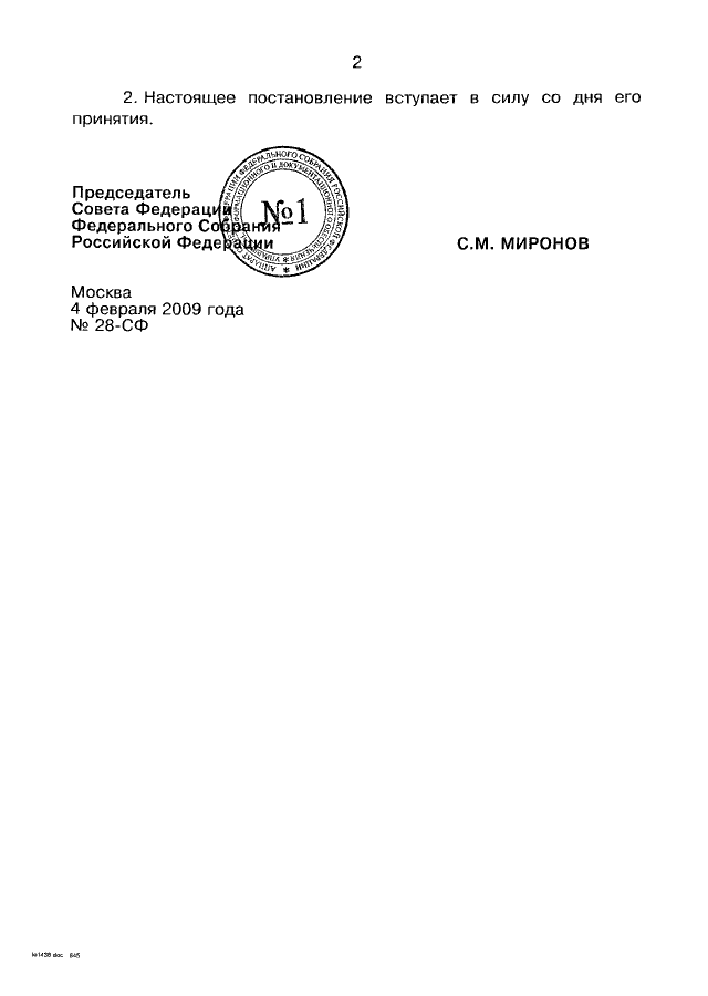 ПОСТАНОВЛЕНИЕ СФ ФС РФ от 04.02.2009 N 28-СФ