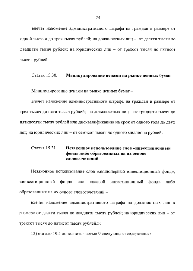 "О ВНЕСЕНИИ ИЗМЕНЕНИЙ В КОДЕКС РОССИЙСКОЙ ФЕДЕРАЦИИ ОБ АДМИНИСТРАТИВНЫХ ПРАВОНАРУШЕНИЯХ В ЧАСТИ УСИЛЕНИЯ АДМИНИСТРАТИВНОЙ ОТВЕТСТВЕННОСТИ ЗА НАРУШЕНИЕ ЗАКОНОДАТЕЛЬСТВА РОССИЙСКОЙ ФЕДЕРАЦИИ ОБ АКЦИОНЕРНЫХ ОБЩЕСТВАХ, ОБ ОБЩЕСТВАХ С ОГРАНИЧЕННОЙ ОТВЕТСТВЕННОСТЬЮ, О РЫНКЕ ЦЕННЫХ БУМАГ И ОБ ИНВЕСТИЦИОННЫХ ФОНДАХ И ФЕДЕРАЛЬНЫЙ ЗАКОН "О РЫНКЕ ЦЕННЫХ БУМАГ" В ЧАСТИ УТОЧНЕНИЯ ОПРЕДЕЛЕНИЯ И КОНКРЕТИЗАЦИИ ПРИЗНАКОВ МАНИПУЛИРОВАНИЯ ЦЕНАМИ НА РЫНКЕ ЦЕННЫХ БУМАГ"