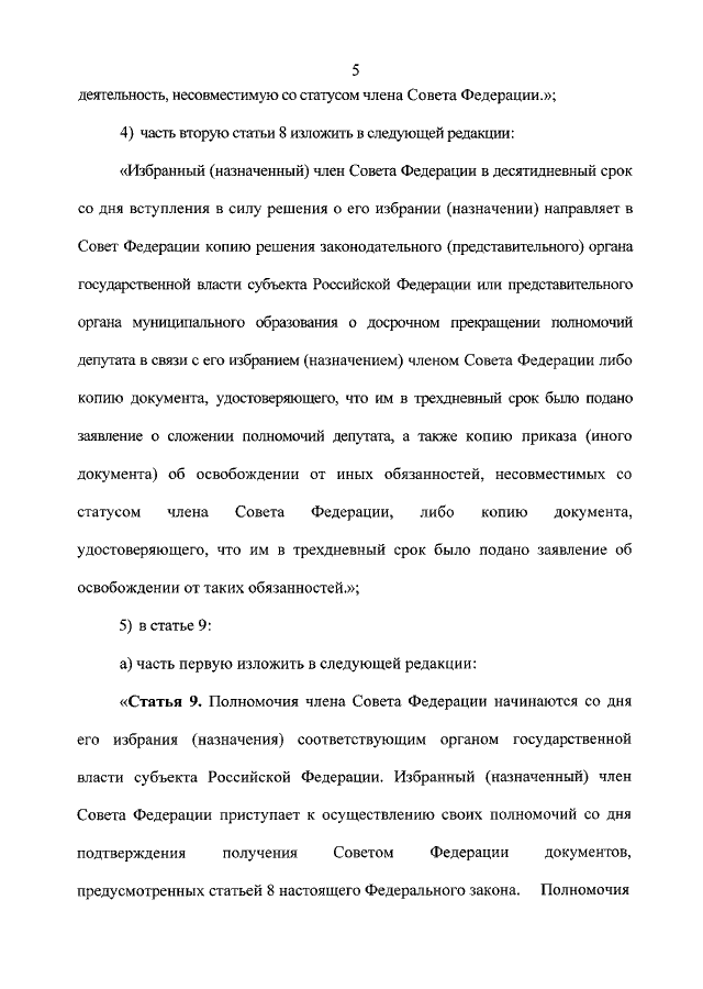 "О ВНЕСЕНИИ ИЗМЕНЕНИЙ В ОТДЕЛЬНЫЕ ЗАКОНОДАТЕЛЬНЫЕ АКТЫ РОССИЙСКОЙ ФЕДЕРАЦИИ В СВЯЗИ С ИЗМЕНЕНИЕМ ПОРЯДКА ФОРМИРОВАНИЯ СОВЕТА ФЕДЕРАЦИИ ФЕДЕРАЛЬНОГО СОБРАНИЯ РОССИЙСКОЙ ФЕДЕРАЦИИ"