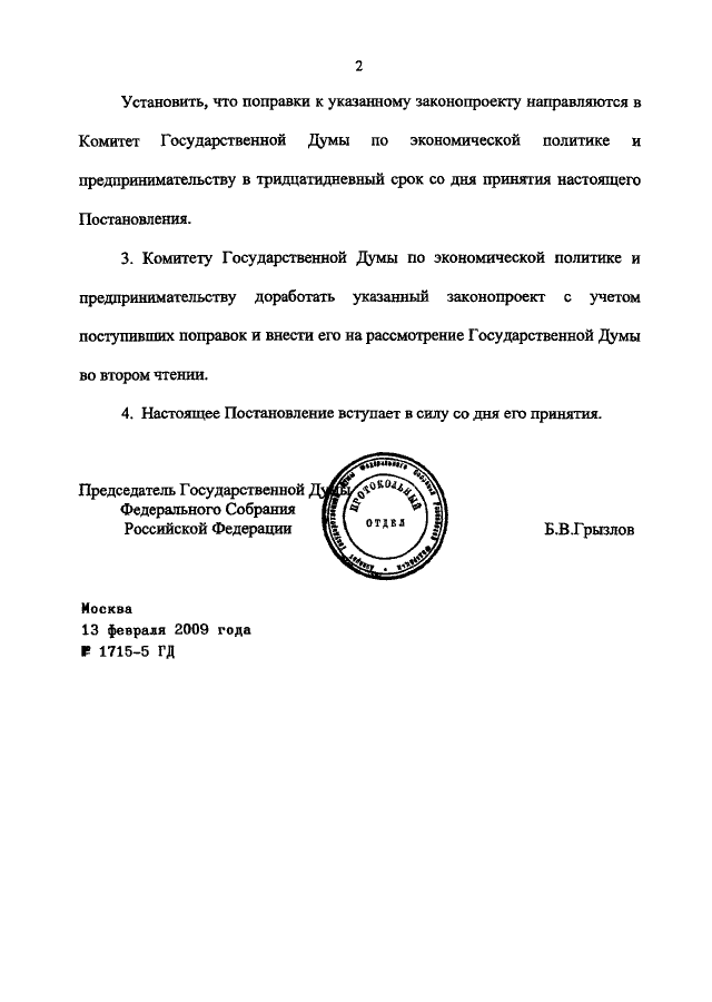 ПОСТАНОВЛЕНИЕ ГД ФС РФ от 13.02.2009 N 1715-5 ГД