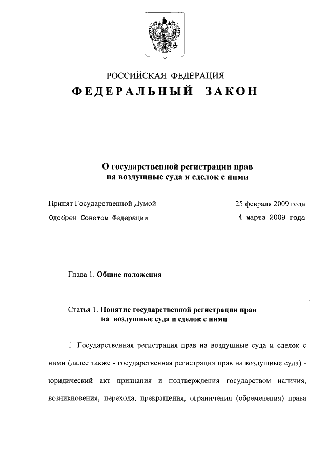 "О ГОСУДАРСТВЕННОЙ РЕГИСТРАЦИИ ПРАВ НА ВОЗДУШНЫЕ СУДА И СДЕЛОК С НИМИ"