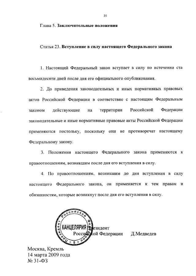 ФЕДЕРАЛЬНЫЙ ЗАКОН от 14.03.2009 N 31-ФЗ
