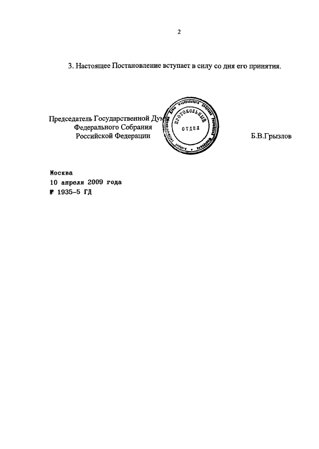 ПОСТАНОВЛЕНИЕ ГД ФС РФ от 10.04.2009 N 1935-5 ГД