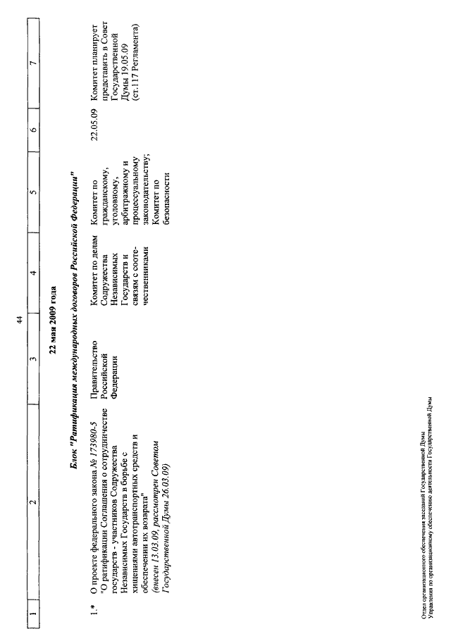 "О КАЛЕНДАРЕ РАССМОТРЕНИЯ ВОПРОСОВ ГОСУДАРСТВЕННОЙ ДУМОЙ С 6 ПО 22 МАЯ 2009 ГОДА"