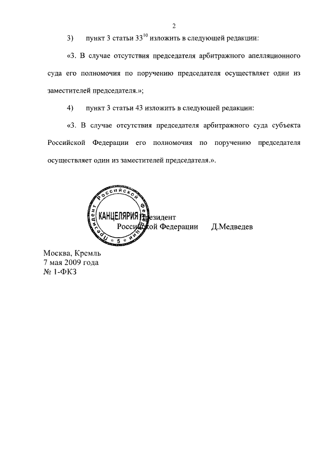 ФЕДЕРАЛЬНЫЙ КОНСТИТУЦИОННЫЙ ЗАКОН от 07.05.2009 N 1-ФКЗ