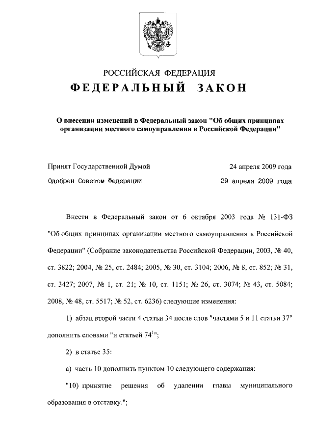 ФЕДЕРАЛЬНЫЙ ЗАКОН от 07.05.2009 N 90-ФЗ
