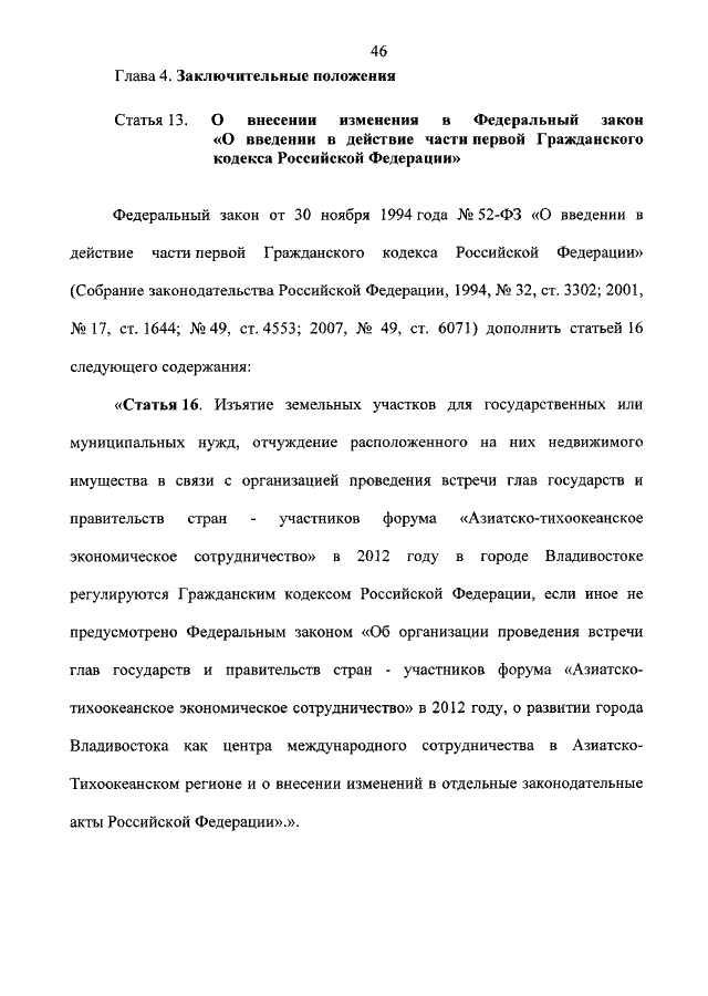 "ОБ ОРГАНИЗАЦИИ ПРОВЕДЕНИЯ ВСТРЕЧИ ГЛАВ ГОСУДАРСТВ И ПРАВИТЕЛЬСТВ СТРАН - УЧАСТНИКОВ ФОРУМА "АЗИАТСКО - ТИХООКЕАНСКОЕ ЭКОНОМИЧЕСКОЕ СОТРУДНИЧЕСТВО" В 2012 ГОДУ, О РАЗВИТИИ ГОРОДА ВЛАДИВОСТОКА КАК ЦЕНТРА МЕЖДУНАРОДНОГО СОТРУДНИЧЕСТВА В АЗИАТСКО - ТИХООКЕАНСКОМ РЕГИОНЕ И О ВНЕСЕНИИ ИЗМЕНЕНИЙ В ОТДЕЛЬНЫЕ ЗАКОНОДАТЕЛЬНЫЕ АКТЫ РОССИЙСКОЙ ФЕДЕРАЦИИ"
