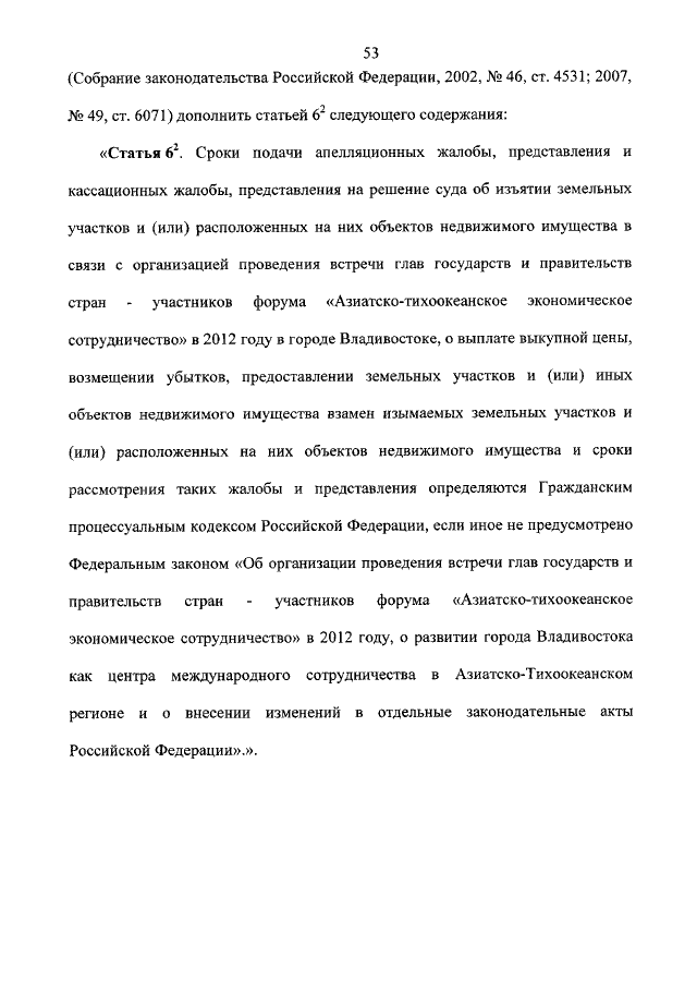 "ОБ ОРГАНИЗАЦИИ ПРОВЕДЕНИЯ ВСТРЕЧИ ГЛАВ ГОСУДАРСТВ И ПРАВИТЕЛЬСТВ СТРАН - УЧАСТНИКОВ ФОРУМА "АЗИАТСКО - ТИХООКЕАНСКОЕ ЭКОНОМИЧЕСКОЕ СОТРУДНИЧЕСТВО" В 2012 ГОДУ, О РАЗВИТИИ ГОРОДА ВЛАДИВОСТОКА КАК ЦЕНТРА МЕЖДУНАРОДНОГО СОТРУДНИЧЕСТВА В АЗИАТСКО - ТИХООКЕАНСКОМ РЕГИОНЕ И О ВНЕСЕНИИ ИЗМЕНЕНИЙ В ОТДЕЛЬНЫЕ ЗАКОНОДАТЕЛЬНЫЕ АКТЫ РОССИЙСКОЙ ФЕДЕРАЦИИ"