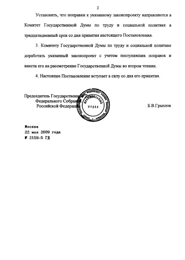 ПОСТАНОВЛЕНИЕ ГД ФС РФ от 22.05.2009 N 2158-5 ГД
