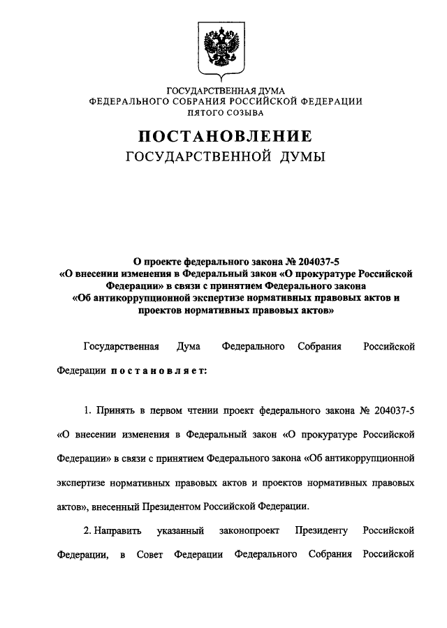 ПРИНЯТИЕМ ФЕДЕРАЛЬНОГО ЗАКОНА "ОБ АНТИКОРРУПЦИОННОЙ ЭКСПЕРТИЗЕ