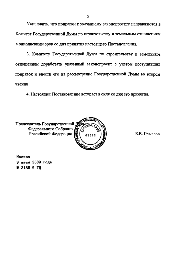 ПОСТАНОВЛЕНИЕ ГД ФС РФ от 03.06.2009 N 2185-5 ГД