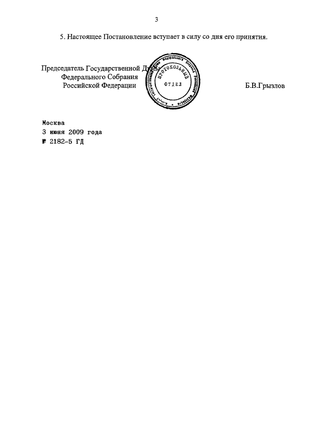ПОСТАНОВЛЕНИЕ ГД ФС РФ от 03.06.2009 N 2182-5 ГД
