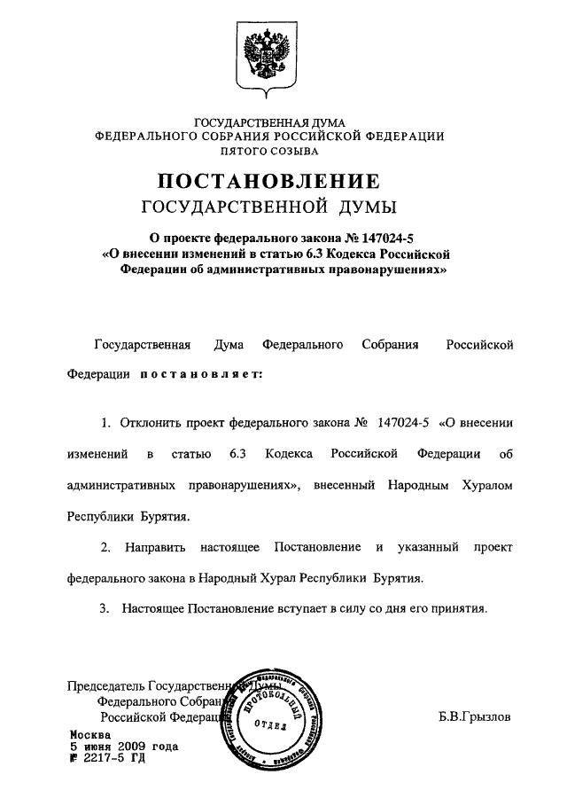 ПОСТАНОВЛЕНИЕ ГД ФС РФ от 05.06.2009 N 2217-5 ГД