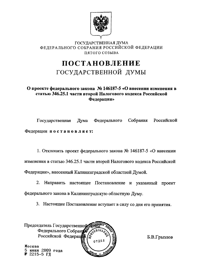 ПОСТАНОВЛЕНИЕ ГД ФС РФ от 05.06.2009 N 2215-5 ГД