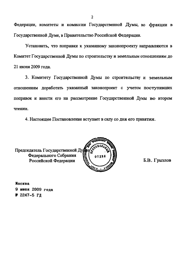 ПОСТАНОВЛЕНИЕ ГД ФС РФ от 09.06.2009 N 2247-5 ГД