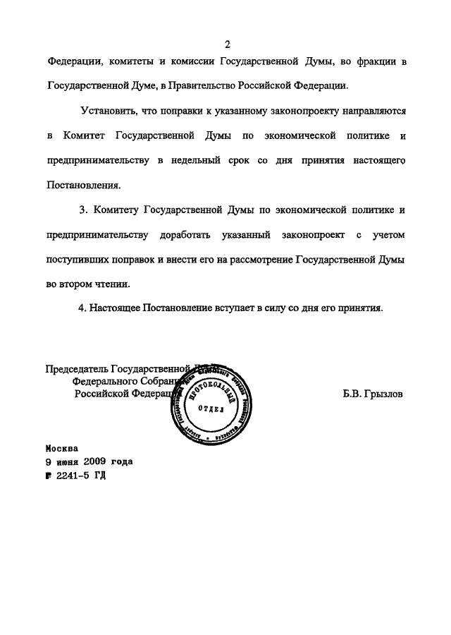 ПОСТАНОВЛЕНИЕ ГД ФС РФ от 09.06.2009 N 2241-5 ГД