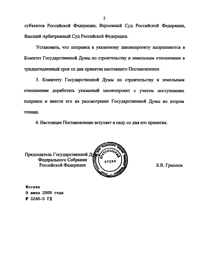 ПОСТАНОВЛЕНИЕ ГД ФС РФ от 09.06.2009 N 2246-5 ГД