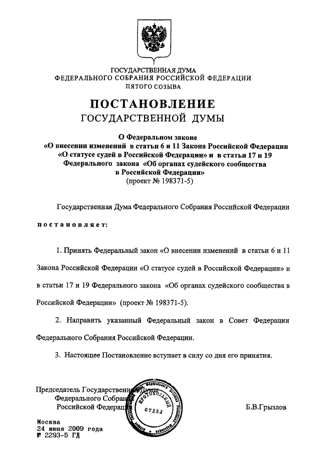 ПОСТАНОВЛЕНИЕ ГД ФС РФ от 24.06.2009 N 2293-5 ГД