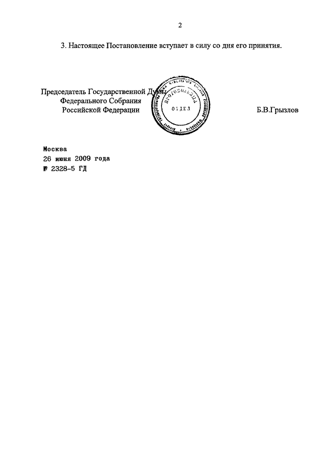 ПОСТАНОВЛЕНИЕ ГД ФС РФ от 26.06.2009 N 2328-5 ГД