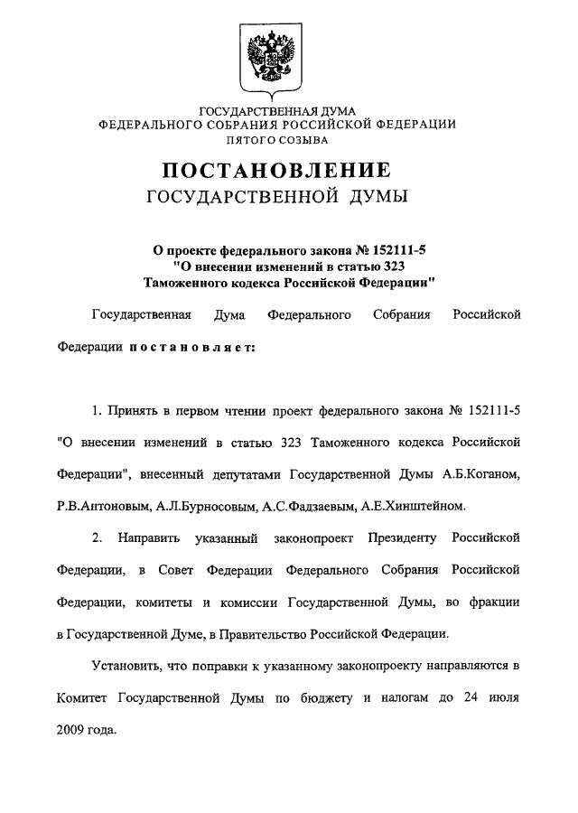 ПОСТАНОВЛЕНИЕ ГД ФС РФ от 24.06.2009 N 2307-5 ГД