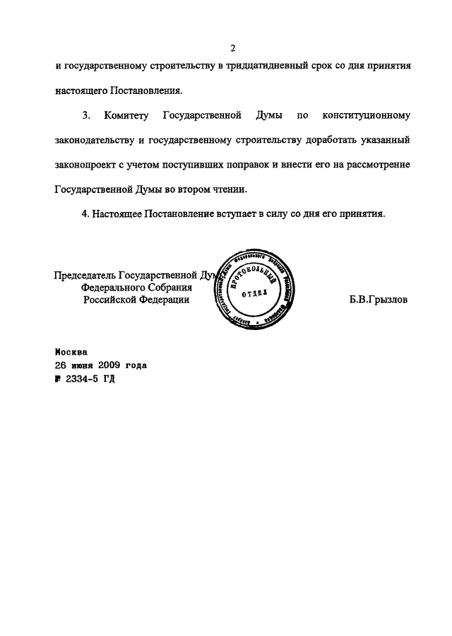 ПОСТАНОВЛЕНИЕ ГД ФС РФ от 26.06.2009 N 2334-5 ГД