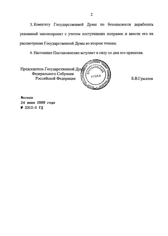 ПОСТАНОВЛЕНИЕ ГД ФС РФ от 24.06.2009 N 2312-5 ГД