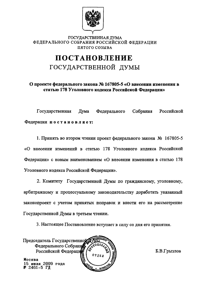 ПОСТАНОВЛЕНИЕ ГД ФС РФ от 15.07.2009 N 2461-5 ГД