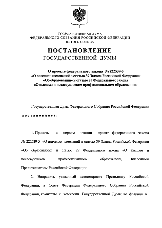 СТАТЬЮ 39 ЗАКОНА РОССИЙСКОЙ ФЕДЕРАЦИИ "ОБ ОБРАЗОВАНИИ" И СТАТЬЮ 27