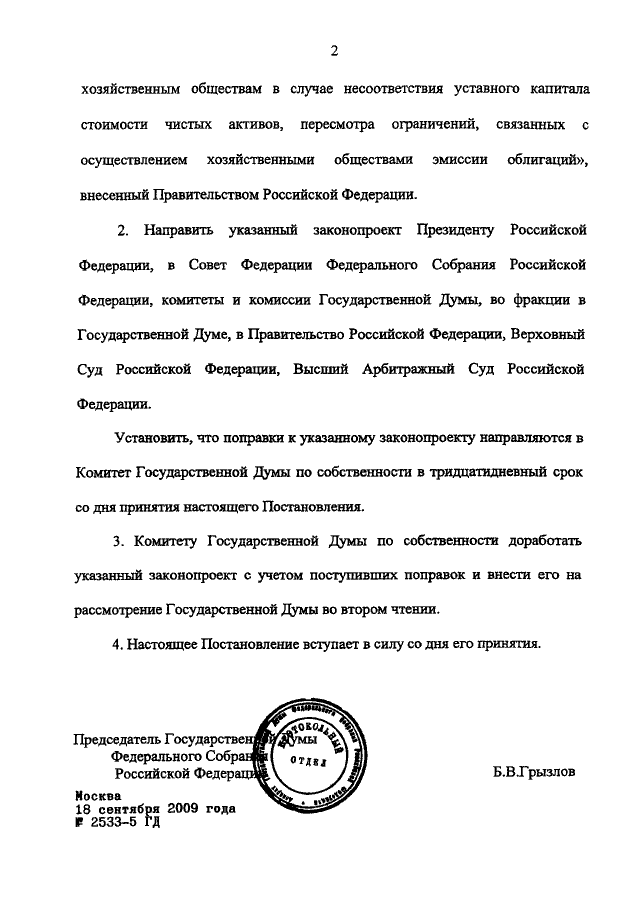 ПОСТАНОВЛЕНИЕ ГД ФС РФ от 18.09.2009 N 2533-5 ГД