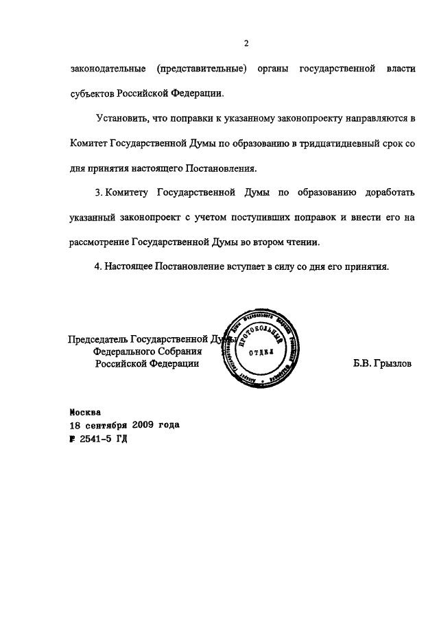 ПОСТАНОВЛЕНИЕ ГД ФС РФ от 18.09.2009 N 2541-5 ГД
