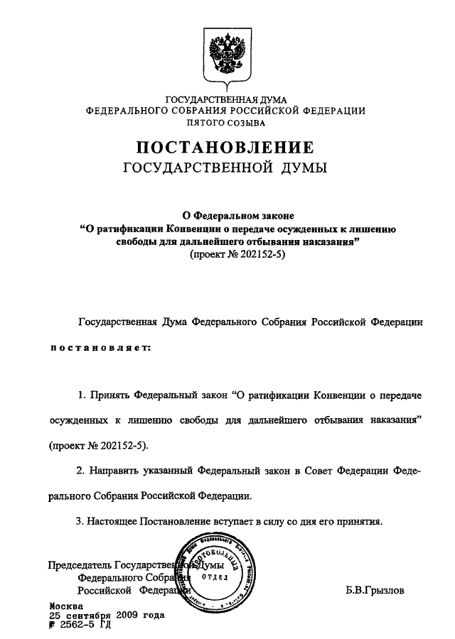 ПОСТАНОВЛЕНИЕ ГД ФС РФ от 25.09.2009 N 2562-5 ГД