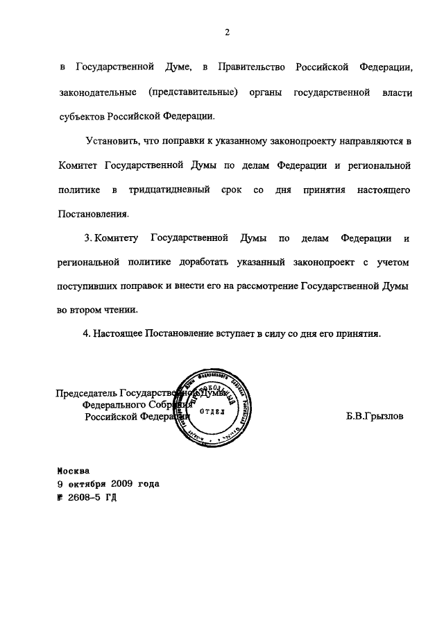 ПОСТАНОВЛЕНИЕ ГД ФС РФ от 09.10.2009 N 2608-5 ГД