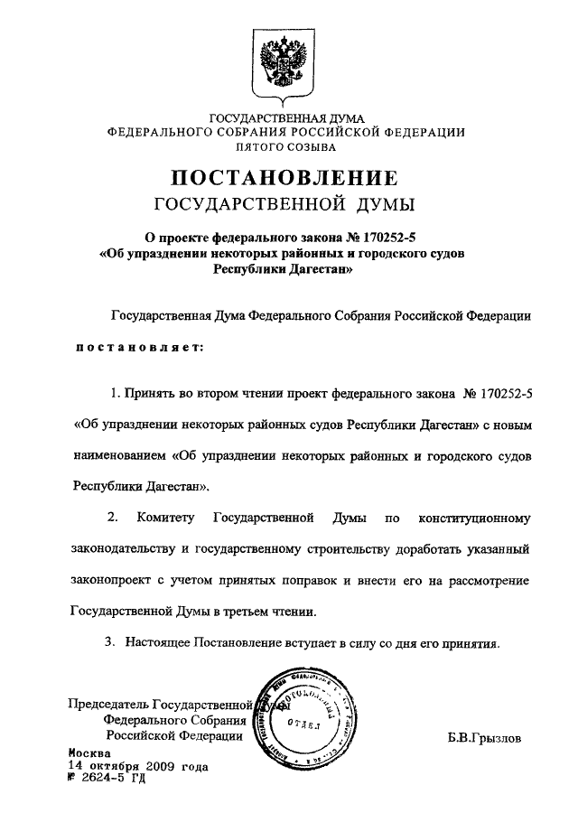 ПОСТАНОВЛЕНИЕ ГД ФС РФ от 14.10.2009 N 2624-5 ГД