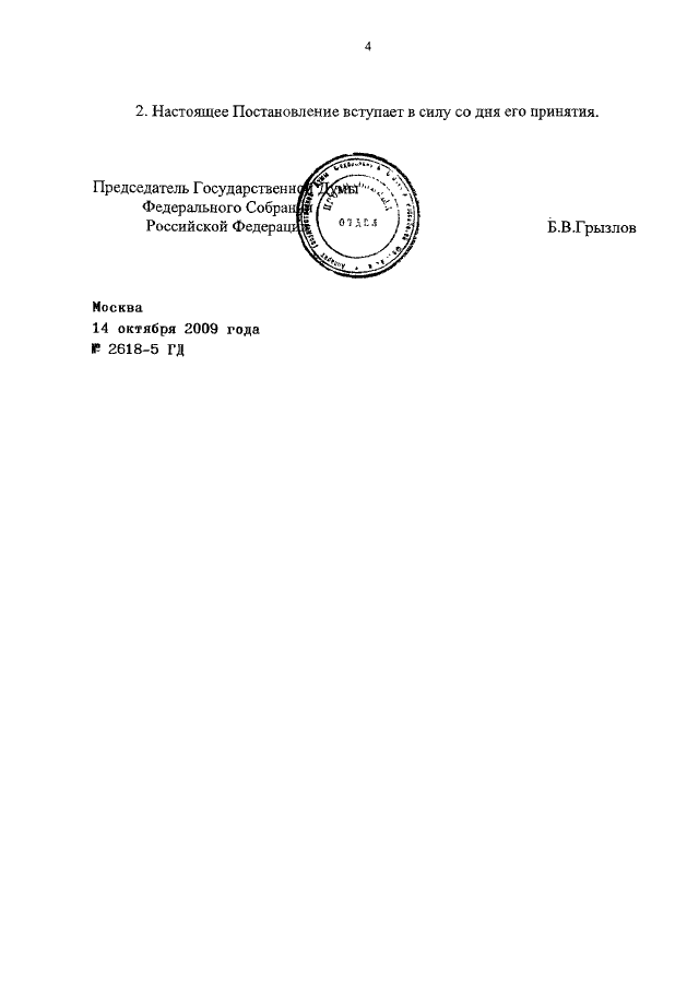 ПОСТАНОВЛЕНИЕ ГД ФС РФ от 14.10.2009 N 2618-5 ГД