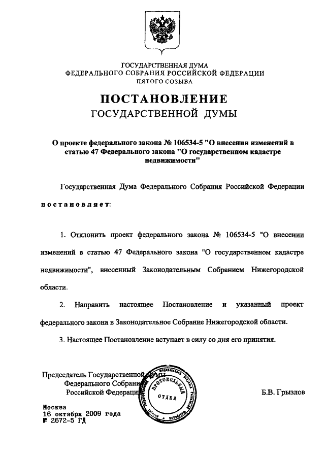 ПОСТАНОВЛЕНИЕ ГД ФС РФ от 16.10.2009 N 2672-5 ГД