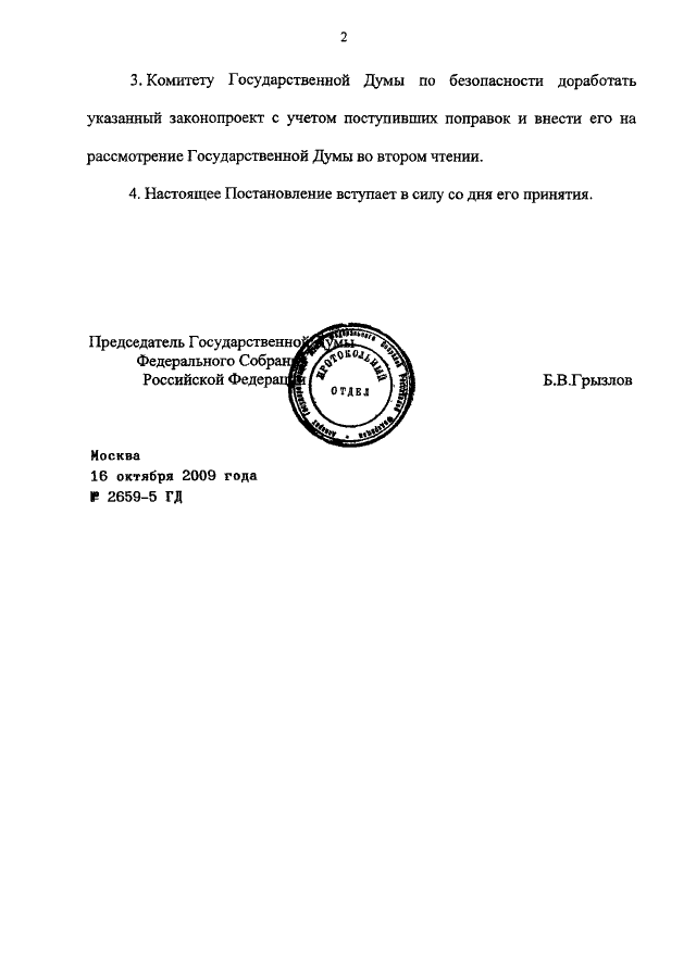 ПОСТАНОВЛЕНИЕ ГД ФС РФ от 16.10.2009 N 2659-5 ГД