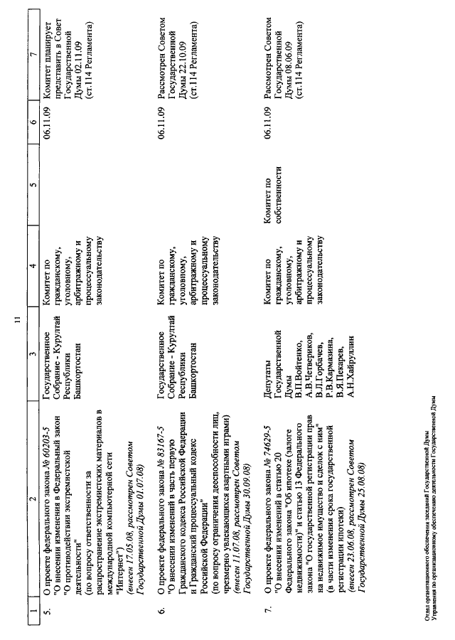 "О КАЛЕНДАРЕ РАССМОТРЕНИЯ ВОПРОСОВ ГОСУДАРСТВЕННОЙ ДУМОЙ С 3 ПО 20 НОЯБРЯ 2009 ГОДА"