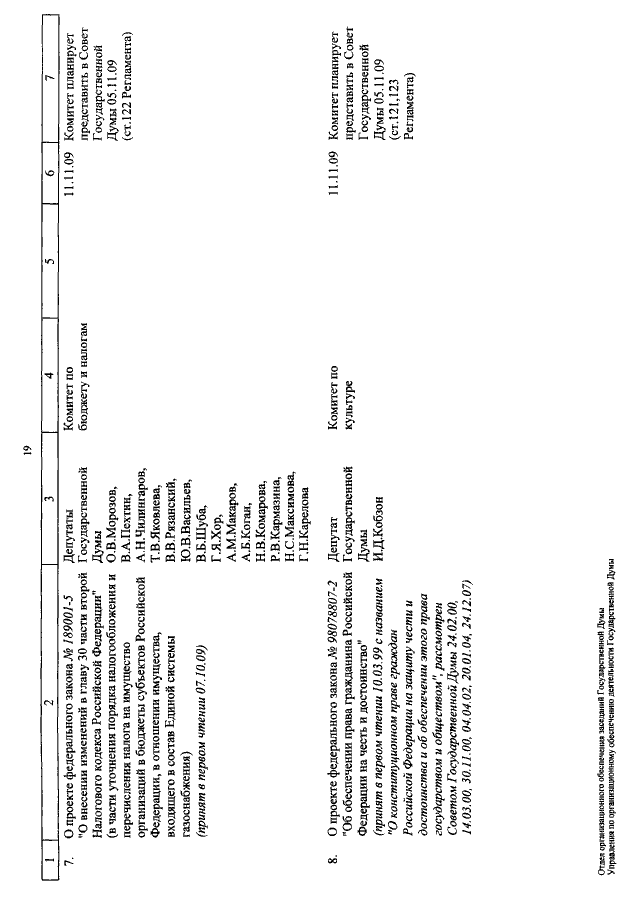 "О КАЛЕНДАРЕ РАССМОТРЕНИЯ ВОПРОСОВ ГОСУДАРСТВЕННОЙ ДУМОЙ С 3 ПО 20 НОЯБРЯ 2009 ГОДА"