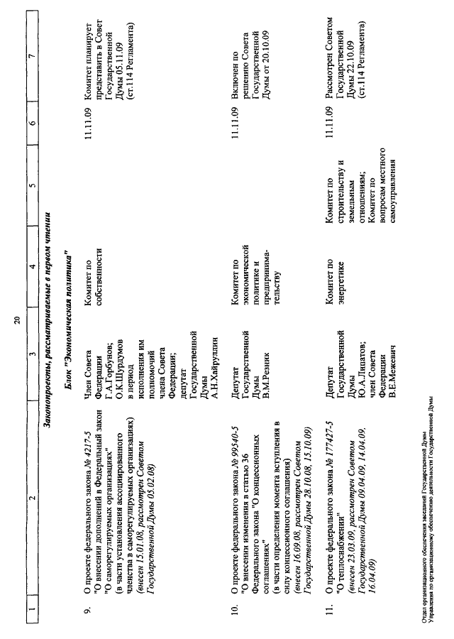 "О КАЛЕНДАРЕ РАССМОТРЕНИЯ ВОПРОСОВ ГОСУДАРСТВЕННОЙ ДУМОЙ С 3 ПО 20 НОЯБРЯ 2009 ГОДА"