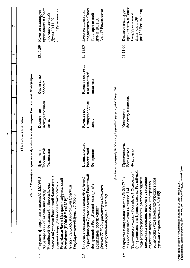 "О КАЛЕНДАРЕ РАССМОТРЕНИЯ ВОПРОСОВ ГОСУДАРСТВЕННОЙ ДУМОЙ С 3 ПО 20 НОЯБРЯ 2009 ГОДА"