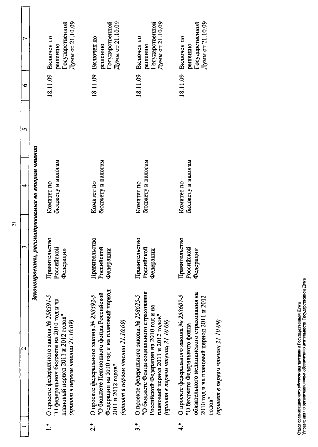"О КАЛЕНДАРЕ РАССМОТРЕНИЯ ВОПРОСОВ ГОСУДАРСТВЕННОЙ ДУМОЙ С 3 ПО 20 НОЯБРЯ 2009 ГОДА"