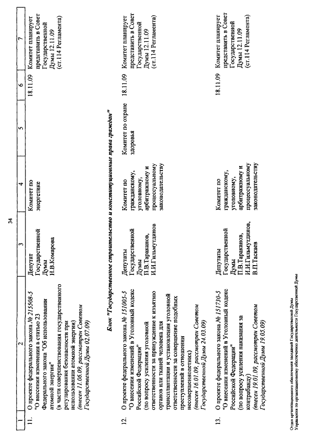 "О КАЛЕНДАРЕ РАССМОТРЕНИЯ ВОПРОСОВ ГОСУДАРСТВЕННОЙ ДУМОЙ С 3 ПО 20 НОЯБРЯ 2009 ГОДА"