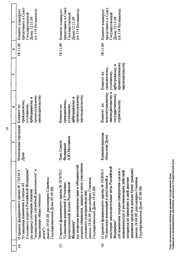 "О КАЛЕНДАРЕ РАССМОТРЕНИЯ ВОПРОСОВ ГОСУДАРСТВЕННОЙ ДУМОЙ С 3 ПО 20 НОЯБРЯ 2009 ГОДА"