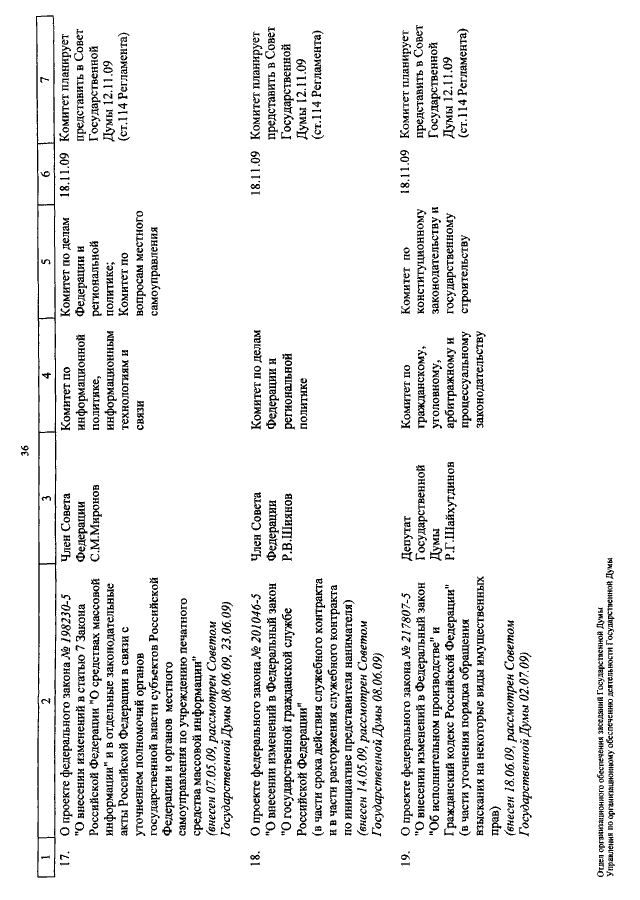 "О КАЛЕНДАРЕ РАССМОТРЕНИЯ ВОПРОСОВ ГОСУДАРСТВЕННОЙ ДУМОЙ С 3 ПО 20 НОЯБРЯ 2009 ГОДА"