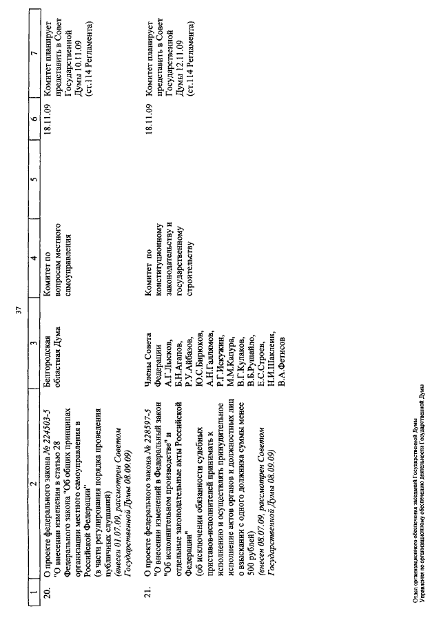 "О КАЛЕНДАРЕ РАССМОТРЕНИЯ ВОПРОСОВ ГОСУДАРСТВЕННОЙ ДУМОЙ С 3 ПО 20 НОЯБРЯ 2009 ГОДА"