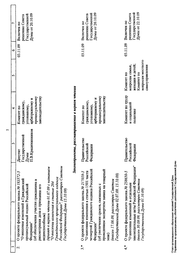 "О КАЛЕНДАРЕ РАССМОТРЕНИЯ ВОПРОСОВ ГОСУДАРСТВЕННОЙ ДУМОЙ С 3 ПО 20 НОЯБРЯ 2009 ГОДА"